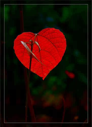 梁中铭不由得有些好奇。他移着拐杖近前几步,对着桌上定睛一看,这才发现原来那是一片艳丽的,悬在细枝上的心形红叶。那叶子的形态很小巧,有着对称的圆弧和纤秀的叶尖。大概是因为经了霜,叶面已经遍体嫣红,看上去玲珑可爱,颇有些楚楚动人的韵致。